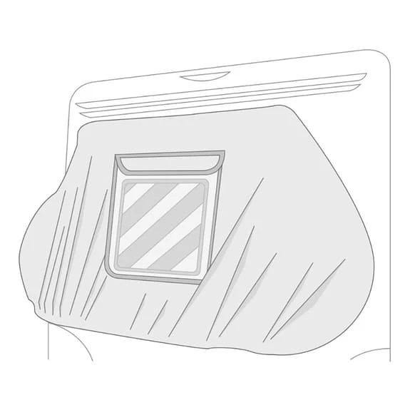 – Ha una tasca di materiale trasparente con velcro per inserire il segnale di carico sporgente.