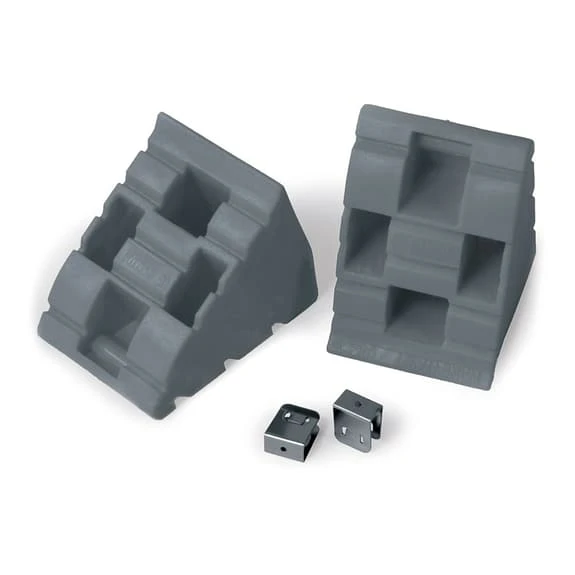 I cunei Fiamma Chock Level sono forniti in coppia e servono per immobilizzare in sicurezza la ruota durante il parcheggio.