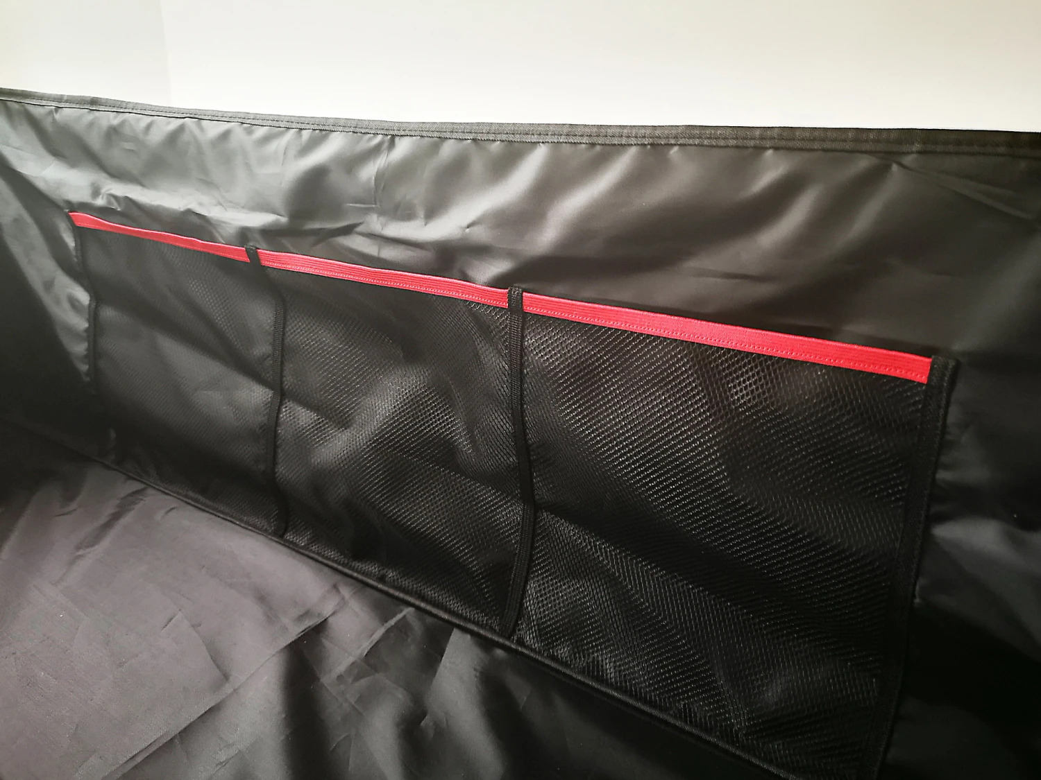 Dotata di ruote, tasche interne in rete con bordo elastico e pannello di rinforzo sul fondo e 2 sui lati.