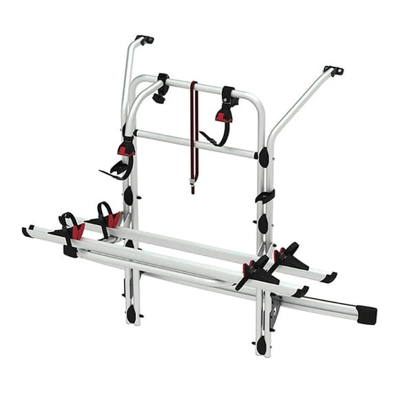Il portabici Fiamma Mercedes Classe V Premium viene fornito di serie con due rastrelliere, che possono trasportare fino a 4 biciclette. Questa versione Premium permette di montare il portapacchi in due posizioni, una standard e una abbassata per facilitare il carico delle biciclette.
