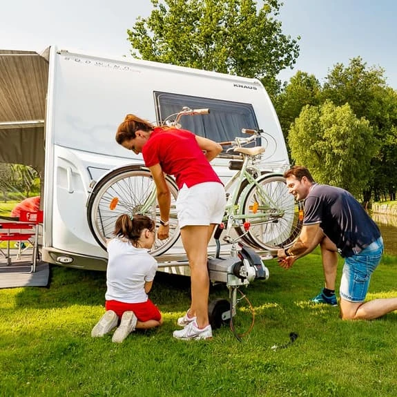 Il portabiciclette Fiamma Caravan XL A per 2/3 biciclette è progettato per essere montato sulla parete anteriore del camper. Permette l’installazione senza fori nelle parti anteriori convenzionali. Nella versione standard si possono caricare fino a 2 biciclette, se si usa un’estensione si possono caricare fino a 3 biciclette.