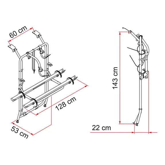 Il portabiciclette Fiamma Opel Vivaro/Renault Trafic per 2/4 biciclette è una delle versioni di portabici specifiche per le monovolume più vendute. In questo caso per Opel Vivaro e Renault Trafic. Nella versione standard si possono caricare fino a 2 biciclette, se si usa un’estensione si possono caricare fino a 4 biciclette.
