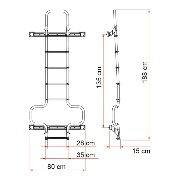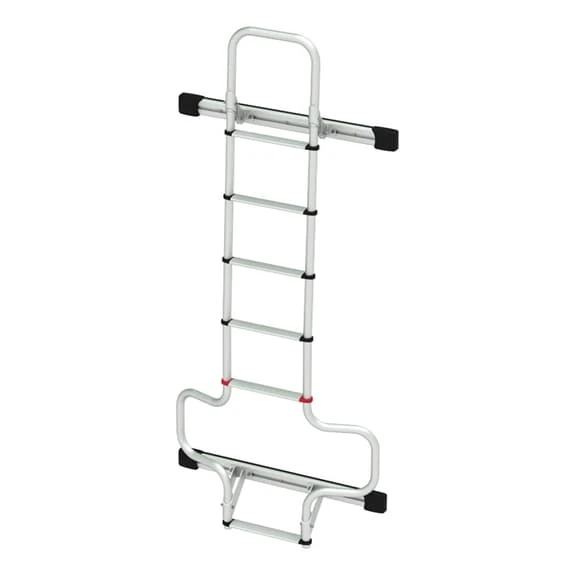 La scala Fiamma Deluxe DJ è completa di barra di fissaggio per un montaggio sicuro sulla porta laterale sinistra del veicolo. Si adatta anche ai seguenti veicoli: Citroën Jumper e Peugeot Boxer dal 2006 e Ford Transit con due porte posteriori dopo il 2006 fino al 2011. Tutte le scale Fiamma hanno tubi del 30 mm di di diametro, 2 mm di spessore, in alluminio anodizzato.