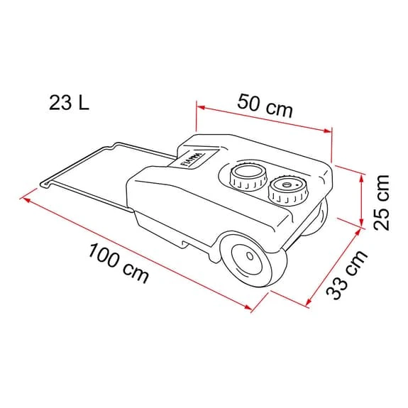 Il serbatoio mobile Fiamma Roll Tank 23 F per acqua pulita 22,5l è un pratico serbatoio portatile per acqua pulita dotato di un comodo tappo di scarico. Dimensioni compatte (passa attraverso i normali cancelli veicolari). Provvisto di una spina aggiuntiva per l’utilizzo con la pompa sommersa (non inclusa).