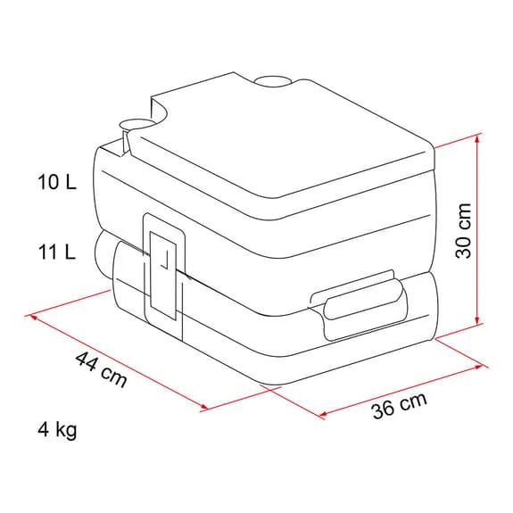 Il WC portatile Fiamma Bi-pot 30 dispone di un deposito superiore da 10L e uno inferiore da 11L. I depositi sono resistenti ai graffi e facili da pulire. Dispone di comode aperture per lo scarico e la seduta è ampia e comoda.
